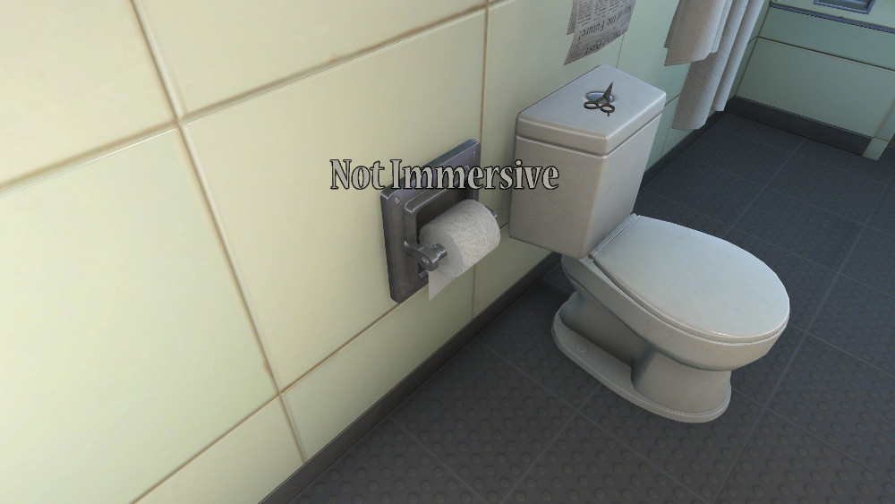 Alguém decidiu criar um mod (alteração que se pode acrescentar a um jogo) muito específico ao Fallout 4: Immersive Toilet Paper. Em todas as casas de banho, temos agora o papel higiénico colocado correctamente (de modo a não distrair do jogo, logo, considerado pelo autor "imersivo").